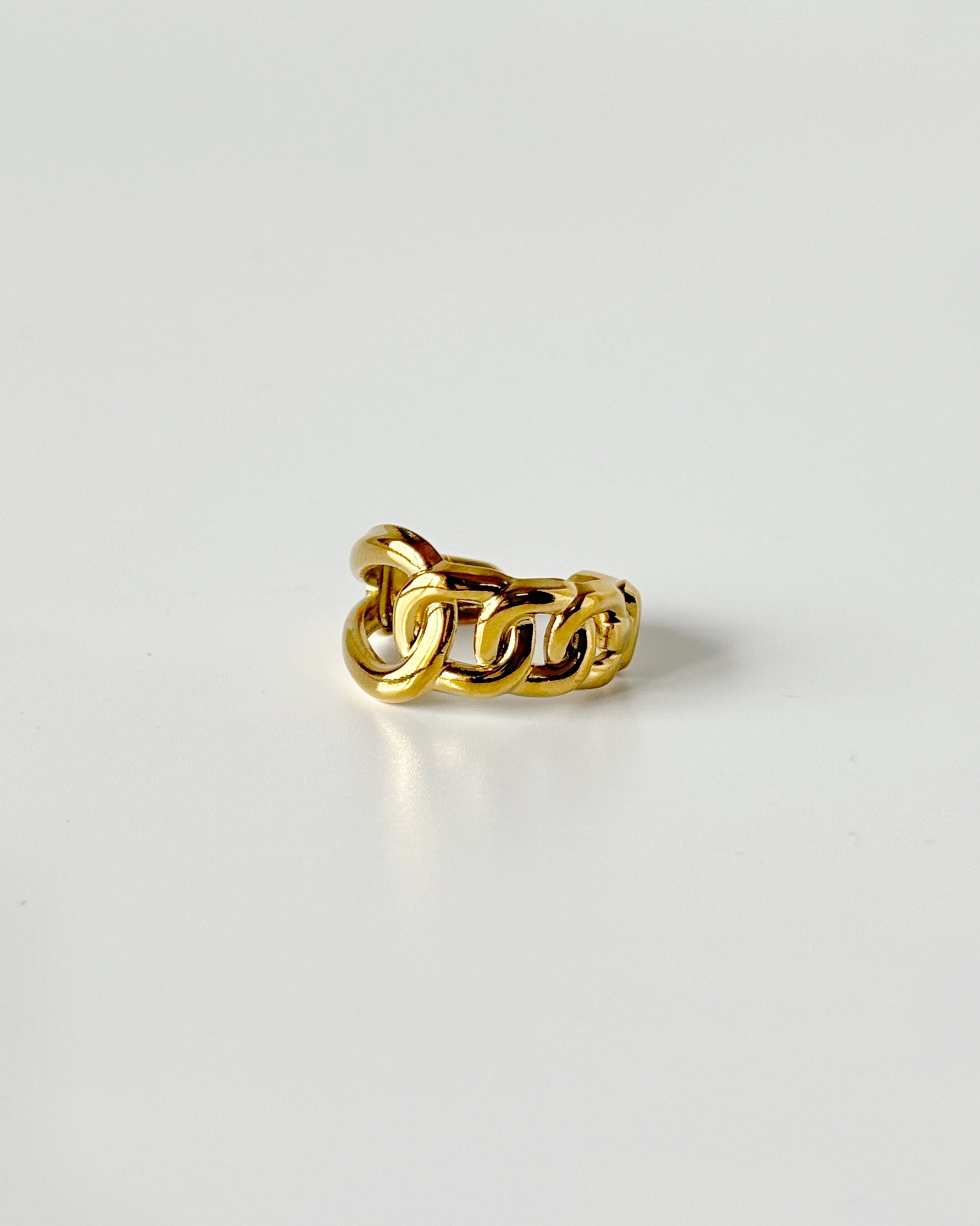 Make a bold statement with our gold-plated link chain ring, featuring a series of interconnected, polished gold links.
