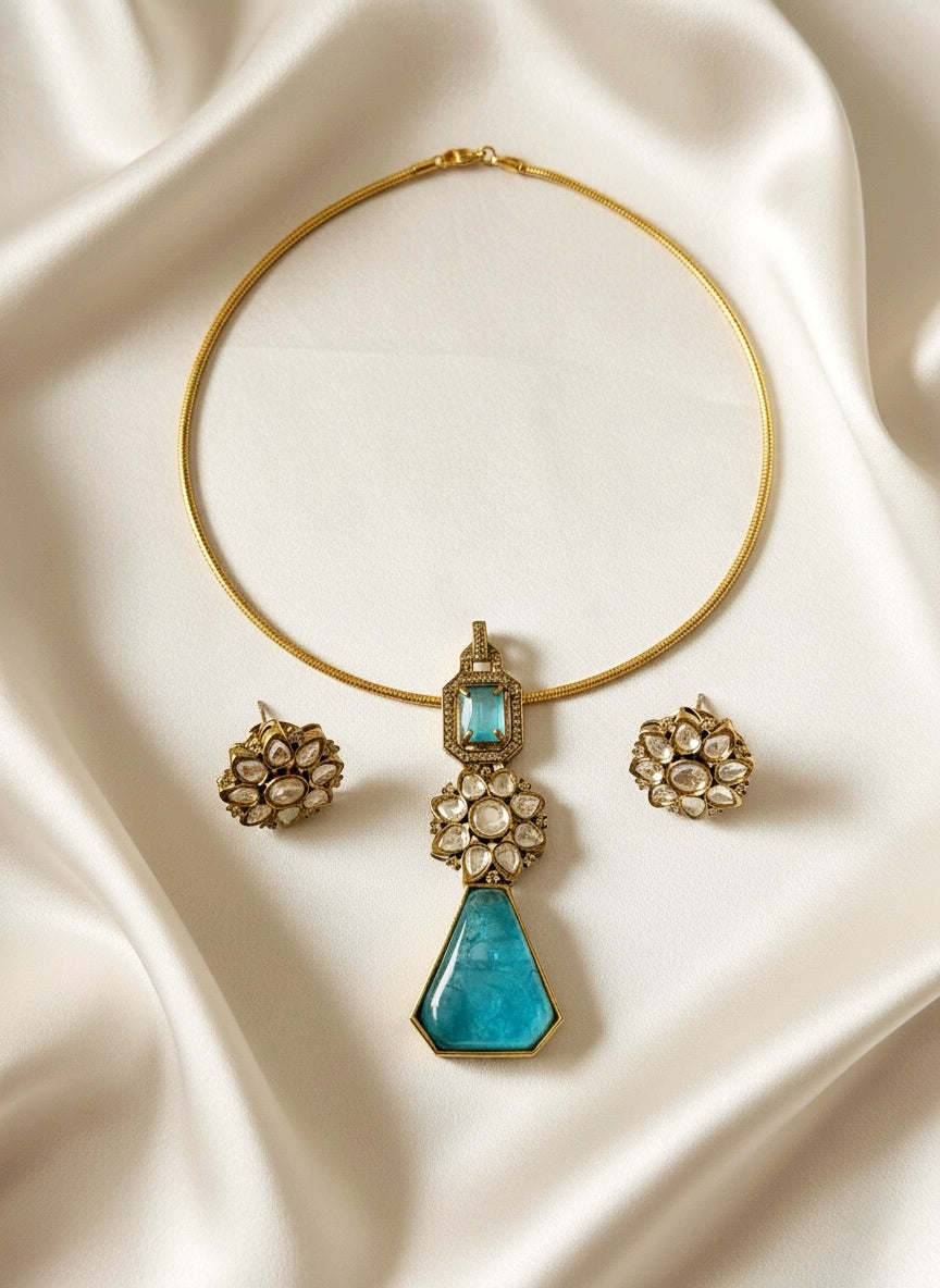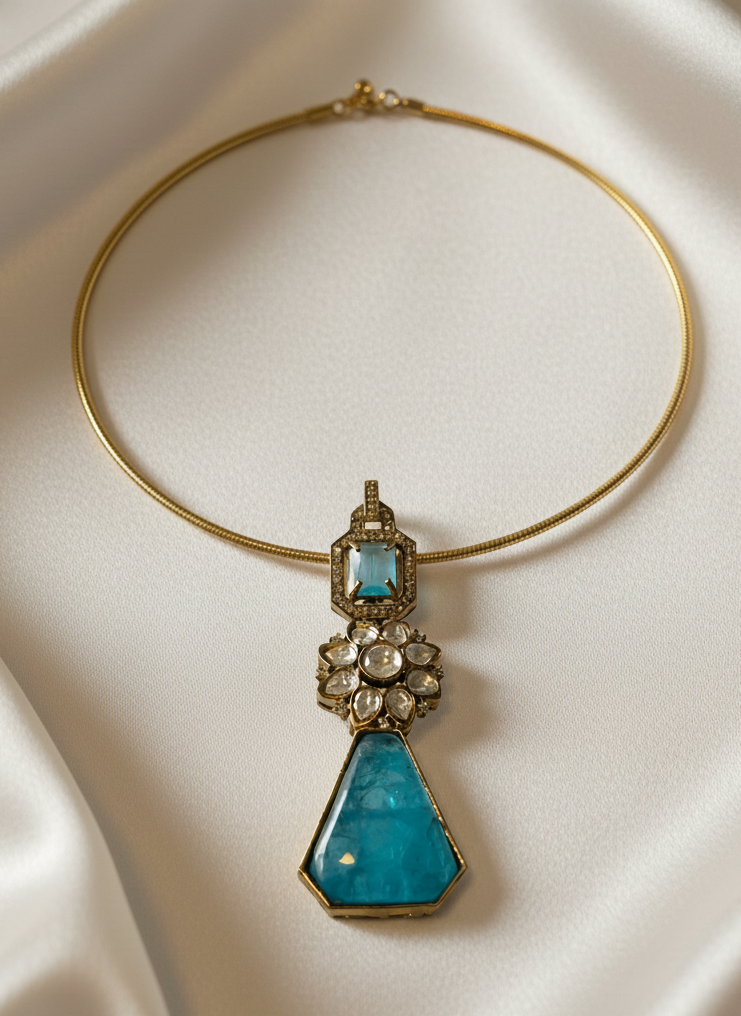 Material: Gold-plated Alloy with Moissanite Polki, Semi-precious Stones, and American Diamonds