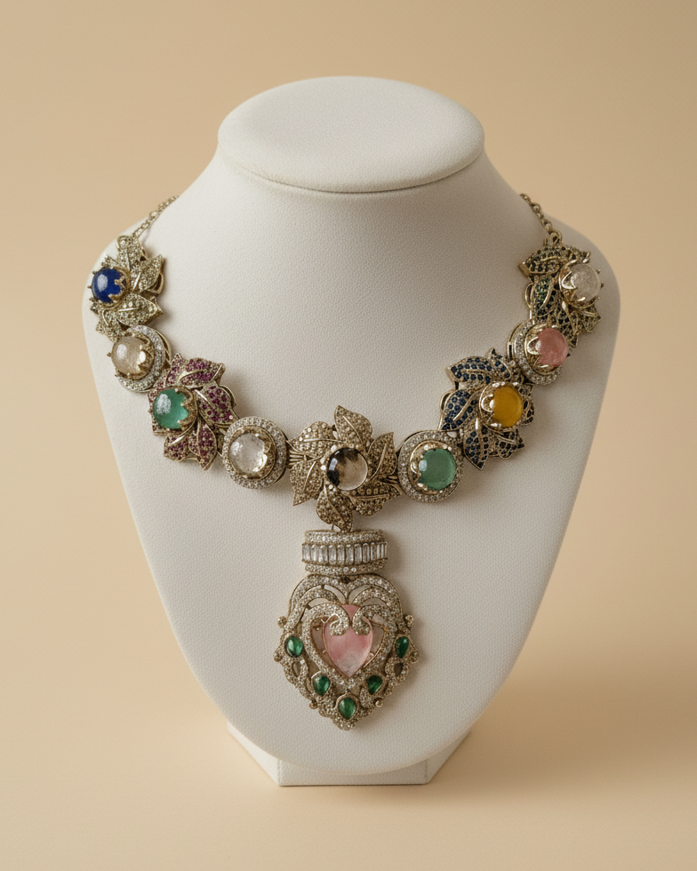 Keep the jewellery away from water, perfumes, and lotions. Store it in a dry, cool place away from direct sunlight. Use soft pouches or lined jewellery boxes to prevent scratching.