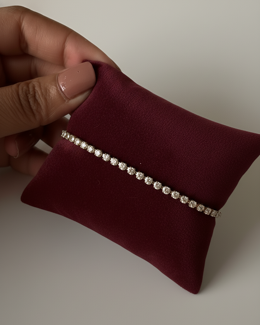 Keep the jewellery away from water, perfumes, and lotions. Store it in a dry, cool place away from direct sunlight. Use soft pouches or lined jewellery boxes to prevent scratching.