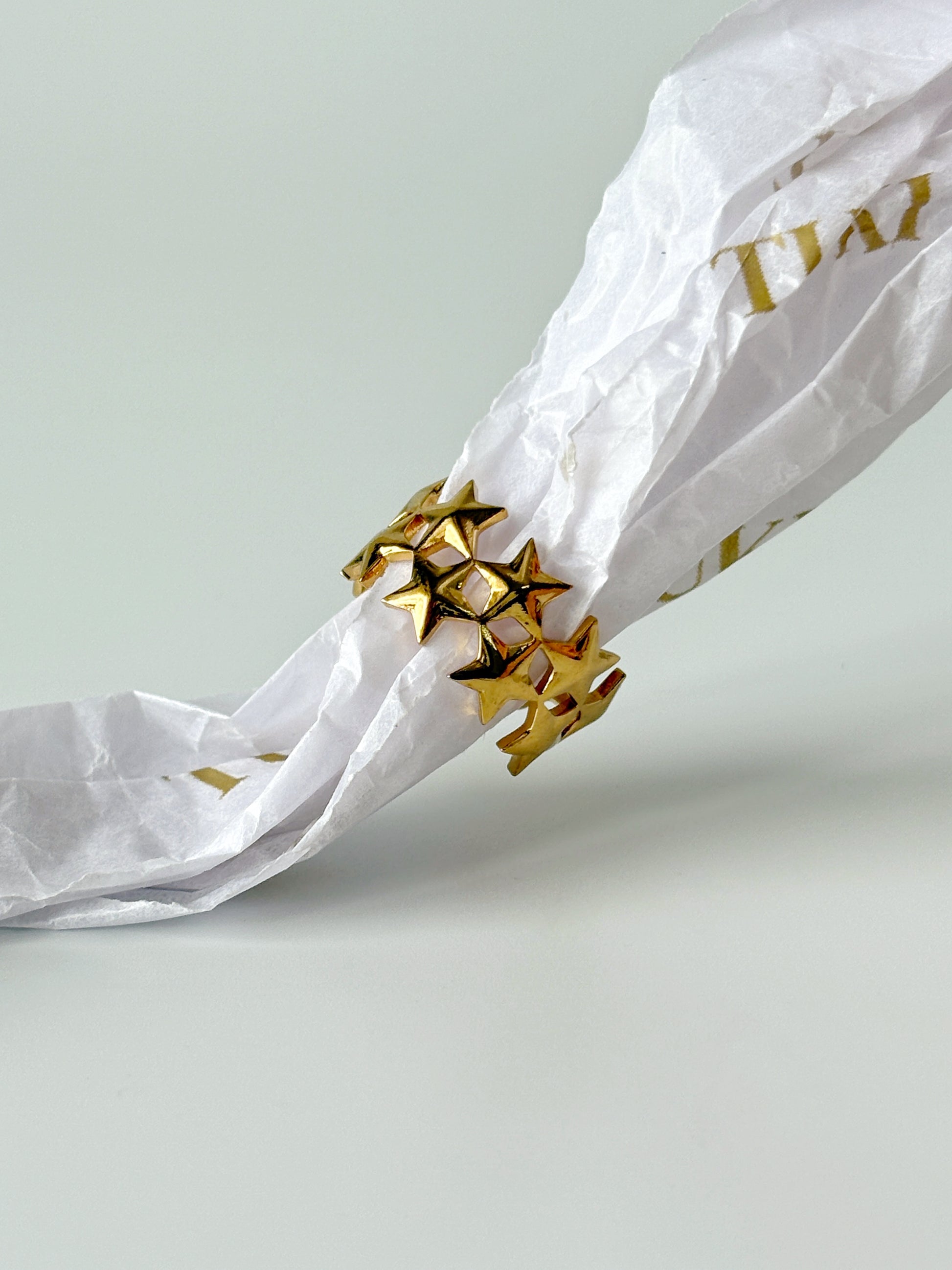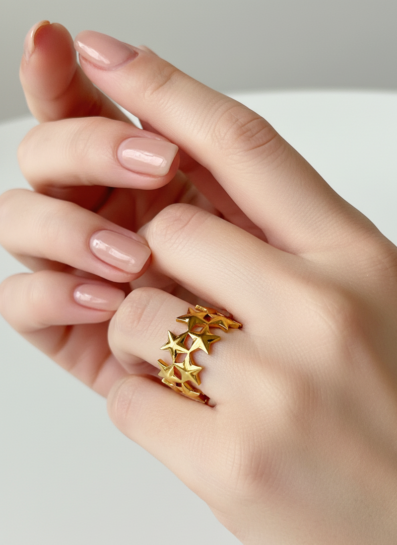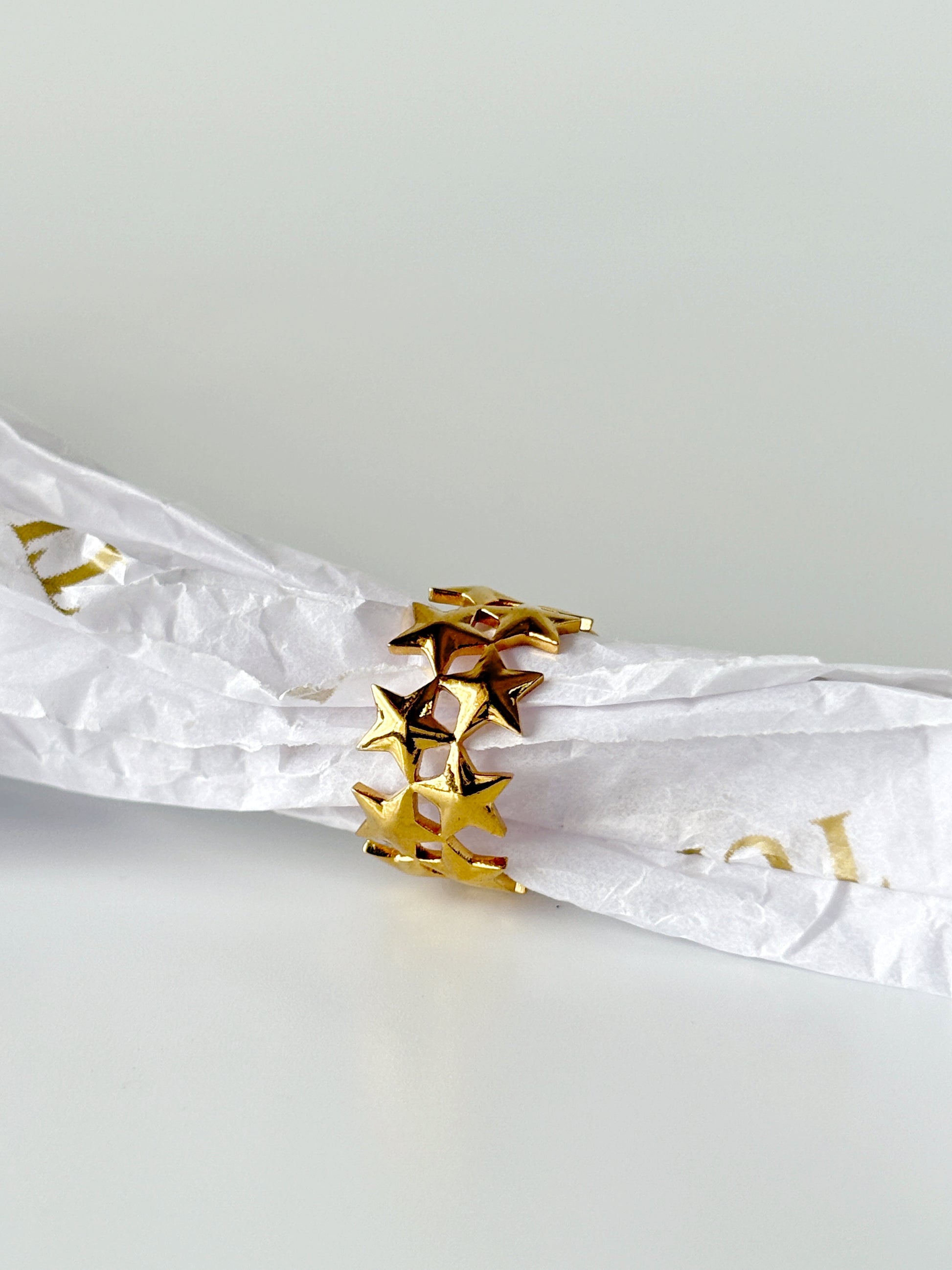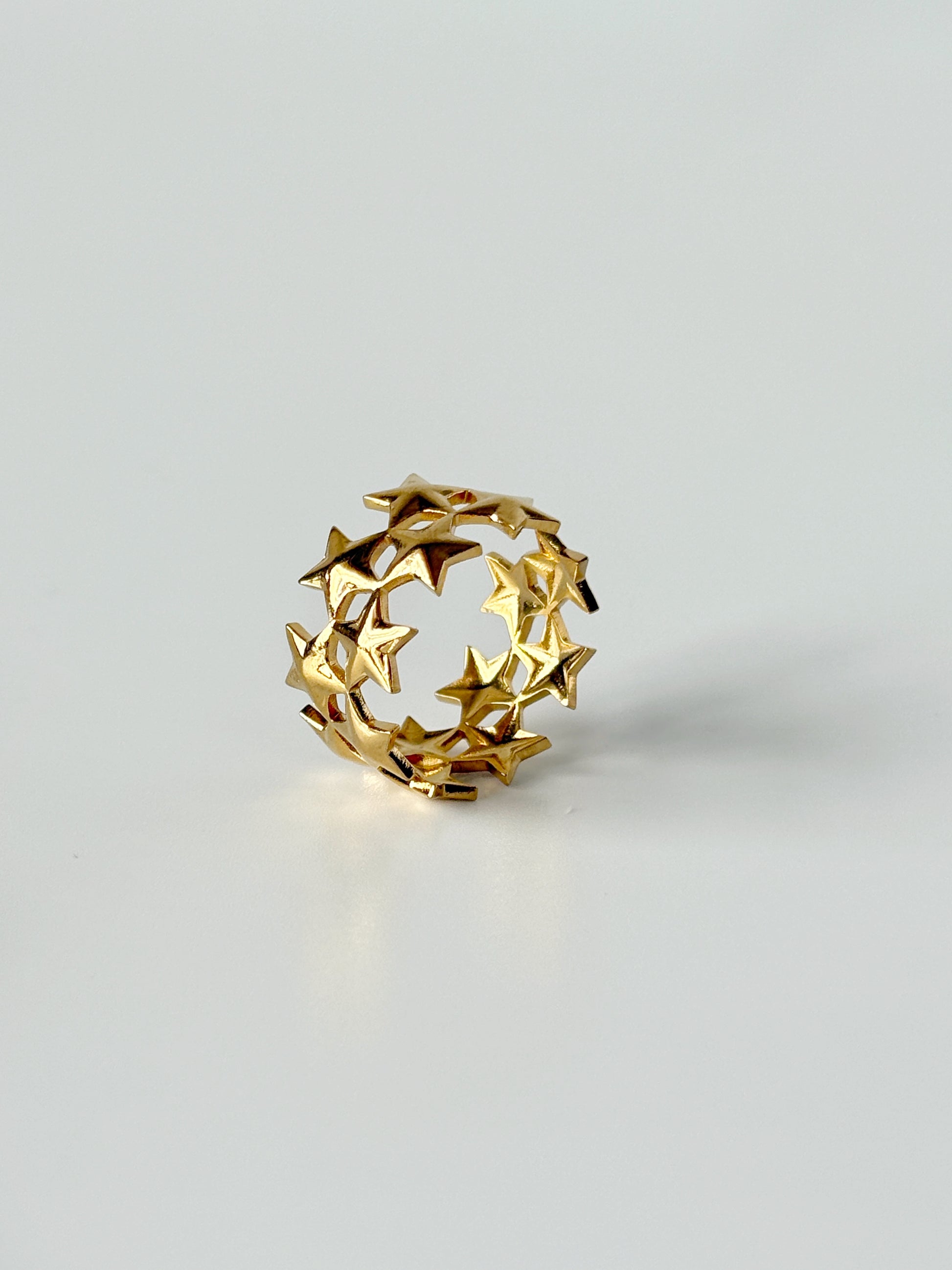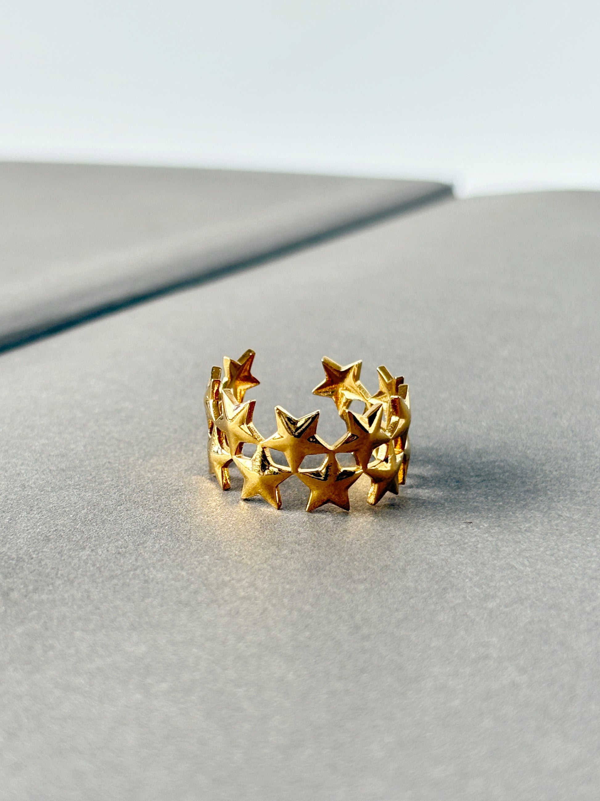 Adorn your finger with our enchanting gold-plated star band ring, meticulously crafted with an array of interconnected stars.